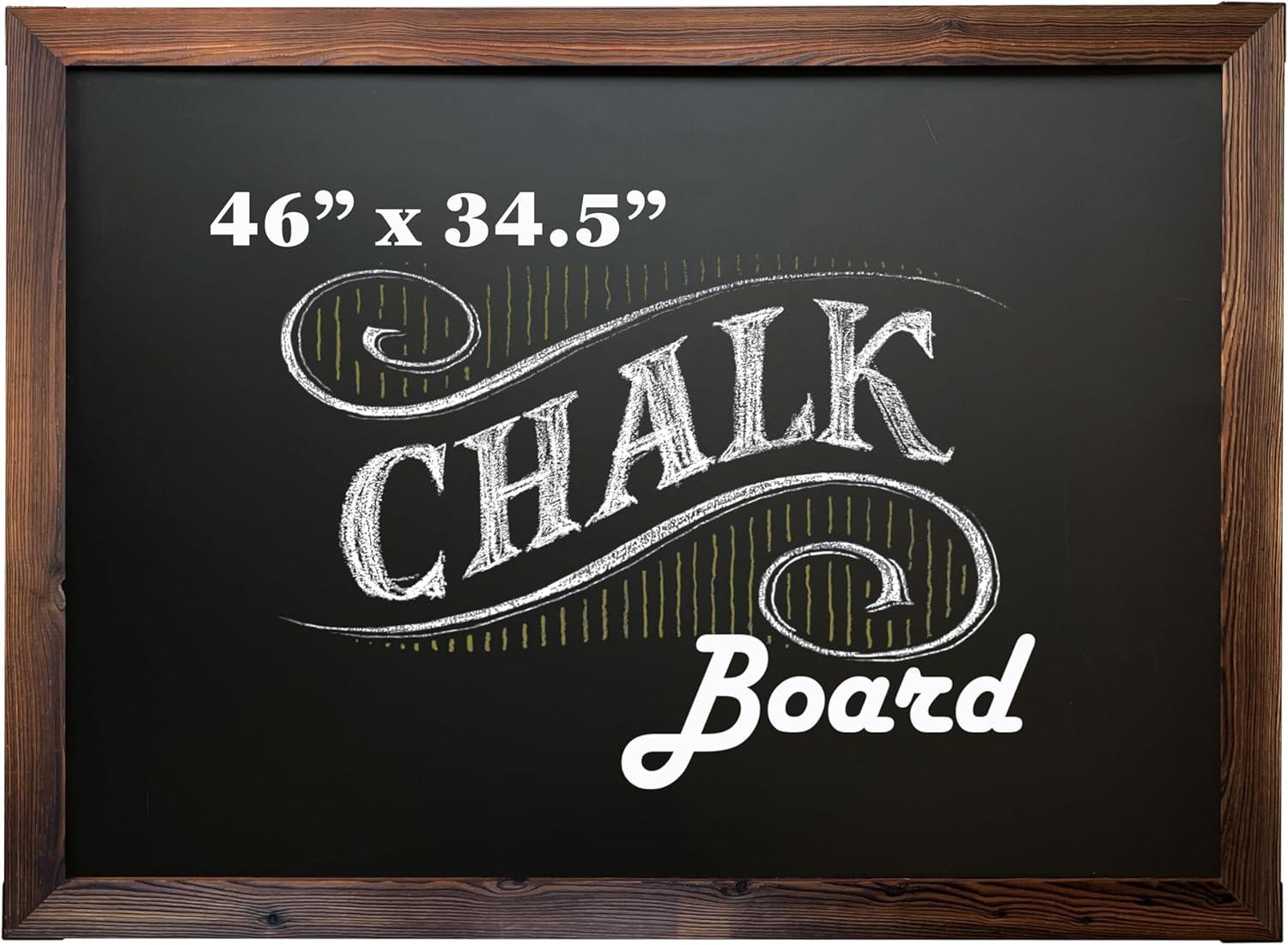 Loddie Doddie Magnetic Chalkboard - 46" x 34.5" with Rustic Frame - Easy-to-Erase Large Magnetic Board for Kitchen & Wall Decor - Hanging Black Chalkboard(Rustic Frame)