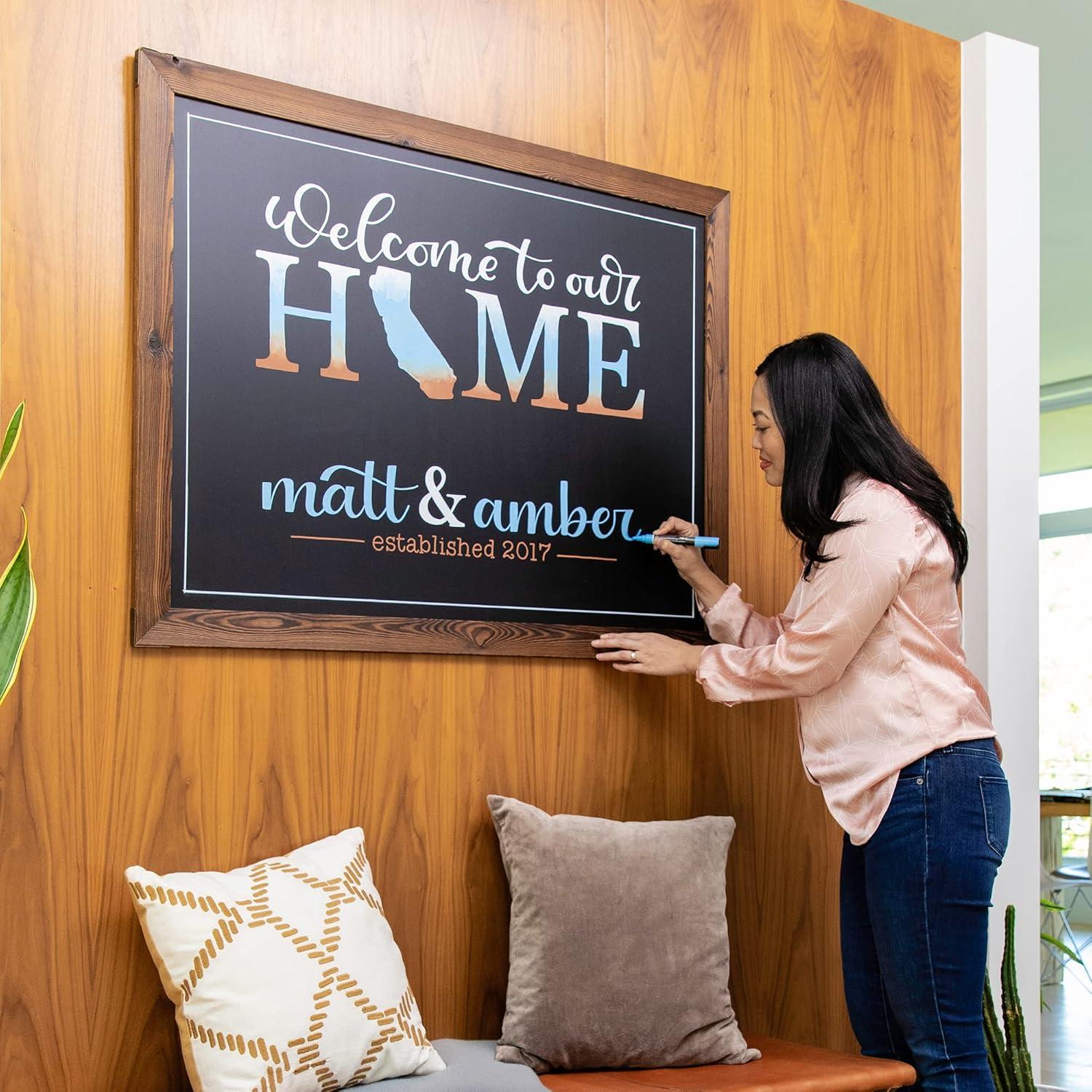 Stylish Decor Boost: Transform your space with this framed chalkboard. The magnetic board's smooth black surface and rustic frame fit any style, bringing a chic and cozy vibe to your living room or kitchen. Ideal for writing notes or displaying photos