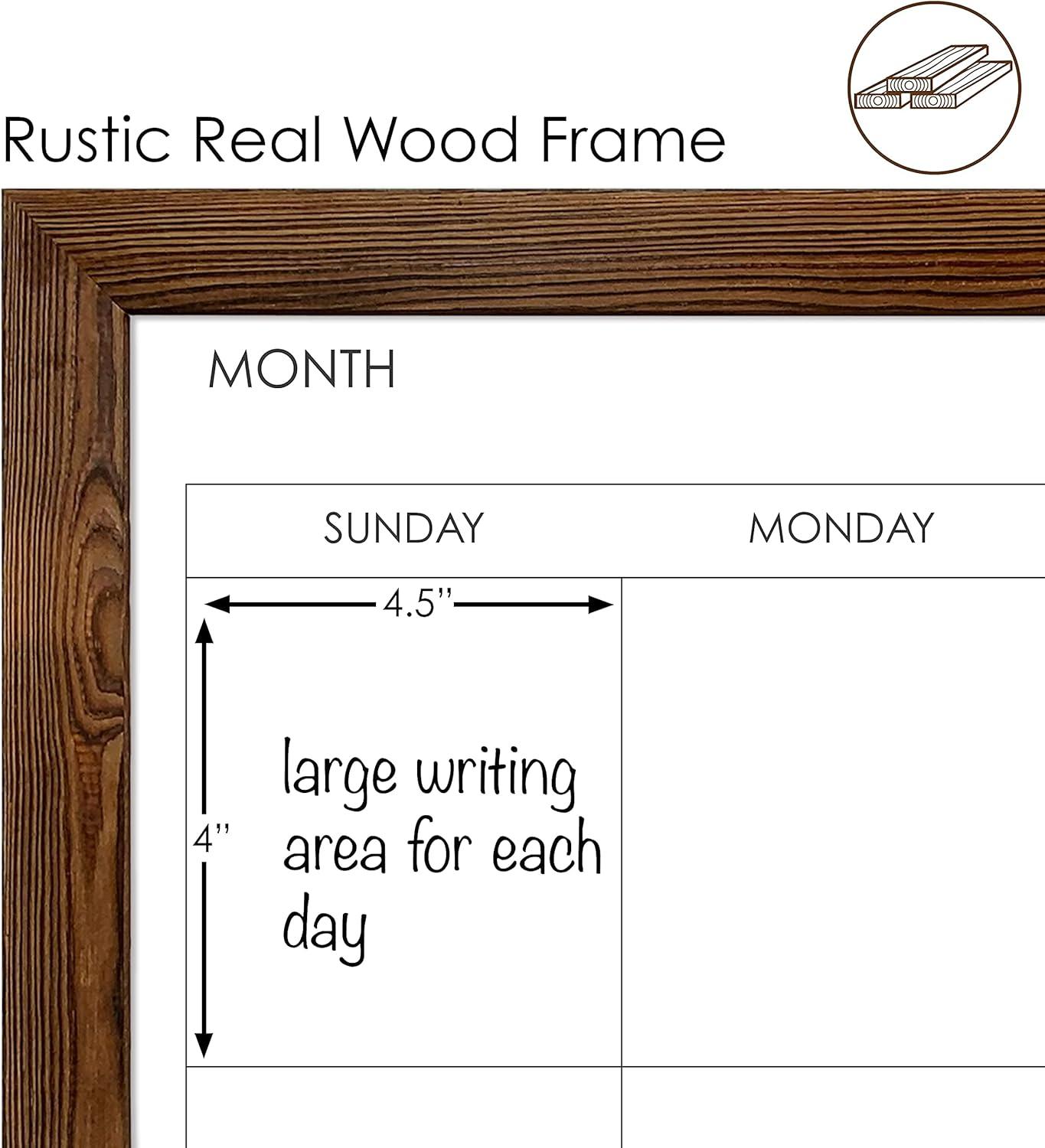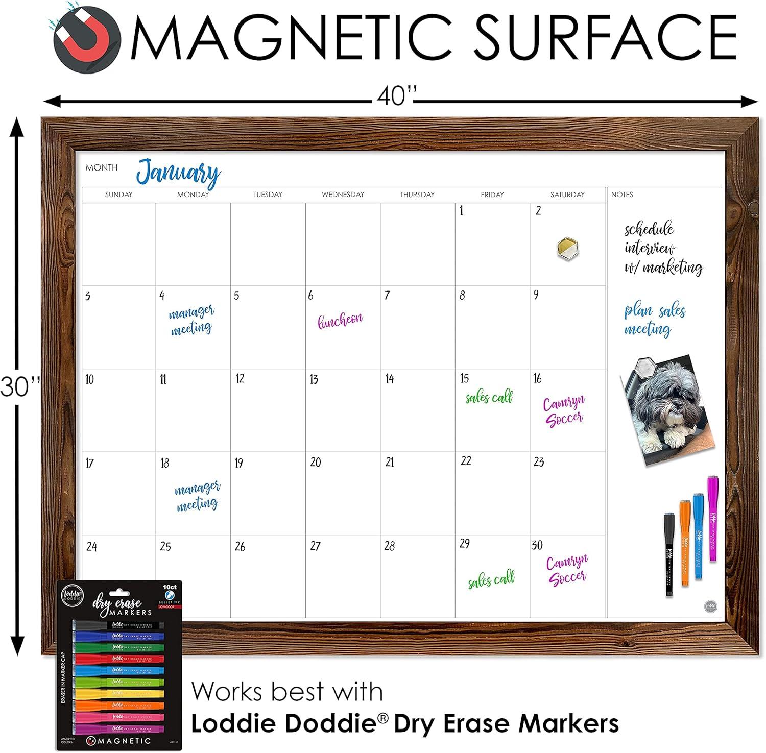 Loddie Doddie - Magnetic Dry Erase Calendar Board, Dry Erase Board for Wall, Wall Mount White Board Calendar, Home or Office Decor for to-Do Lists, Rustic Wood Frame, 30 inches x 40 inches