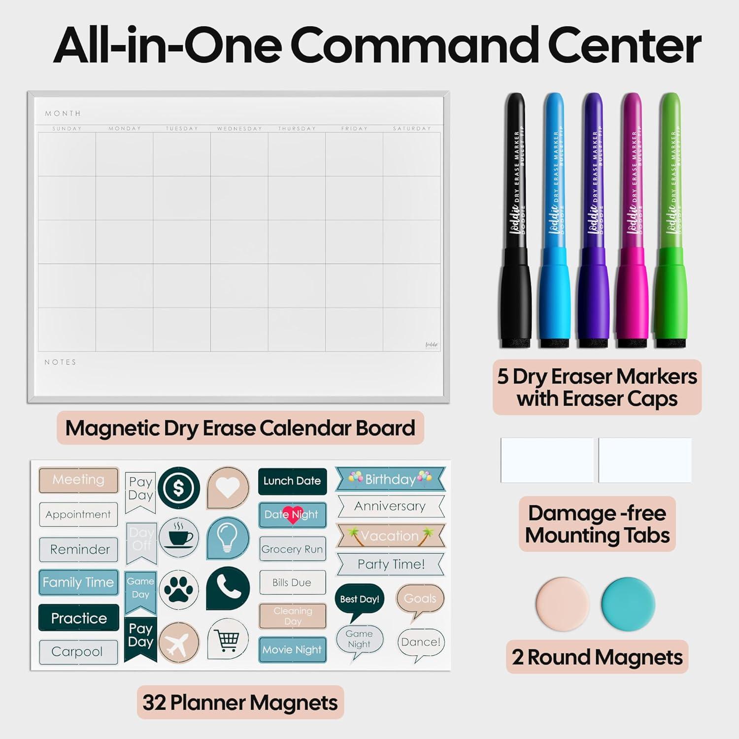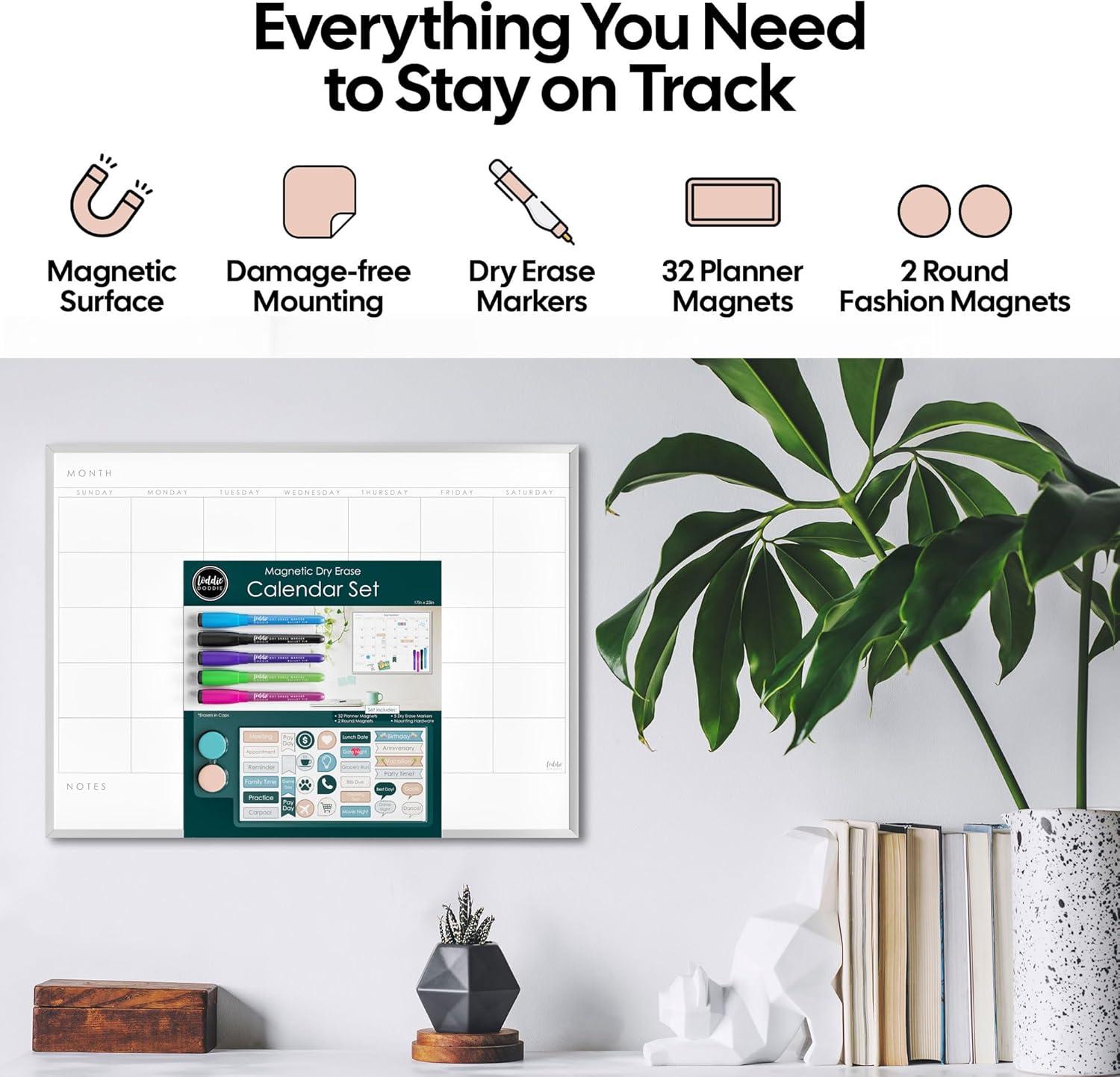 Plan with Style: Meet the Loddie Doddie Magnetic Dry Erase Calendar, your ultimate buddy for slaying holiday chaos. With a 17×23-inch frame, this calendar board for wall is perfect for organizing those Christmas parties and New Year resolutions
