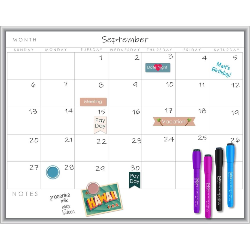 Easy Wipe Clean: Keep your white board calendar dry erase monthly looking fresh with a simple wipe, leaving no ghost marks behind. Whether plans change or new events pop up, updating your schedule is a breeze with this magnetic dry erase board