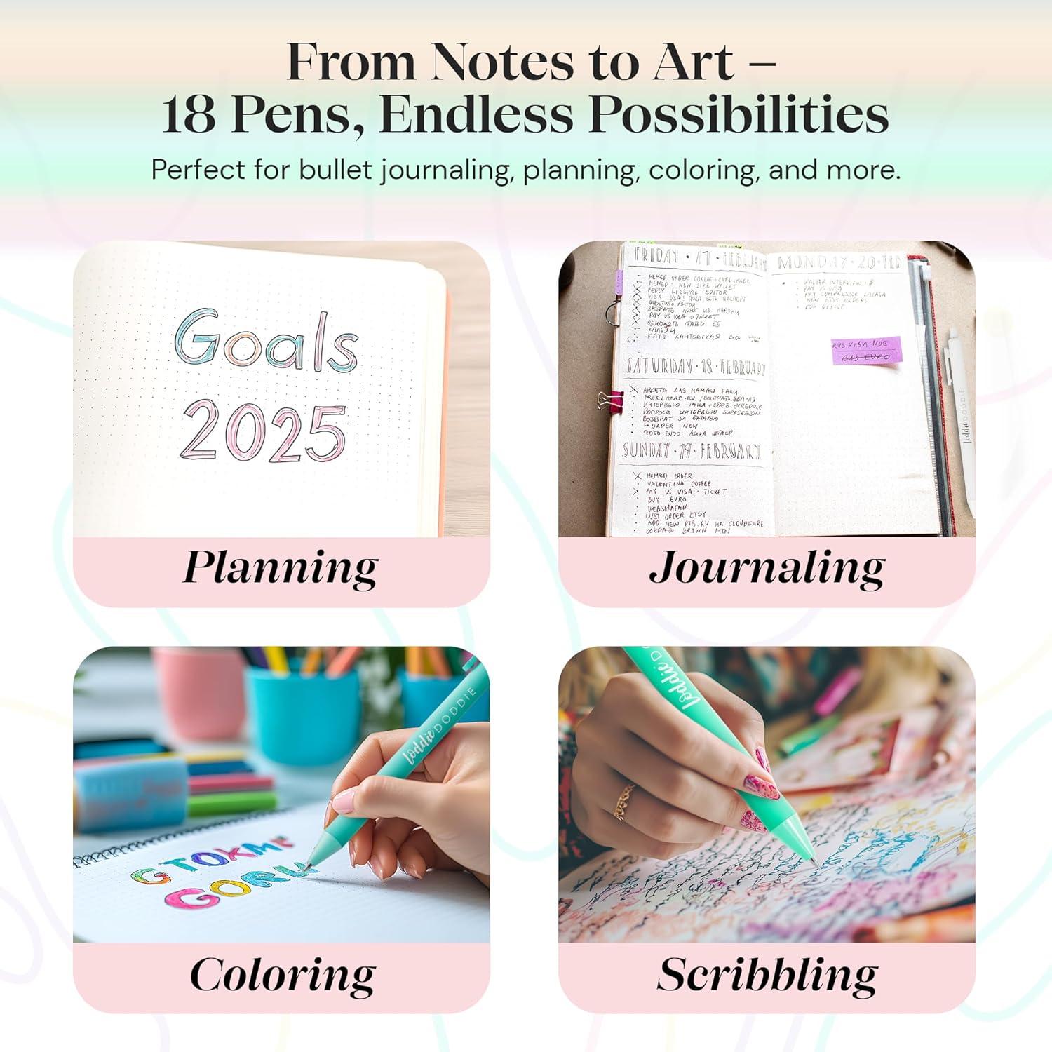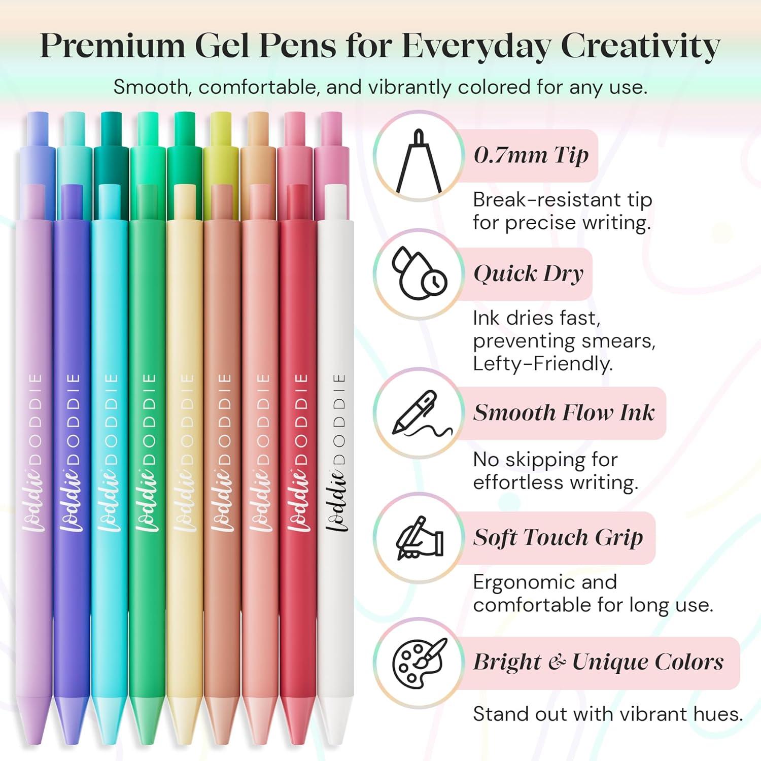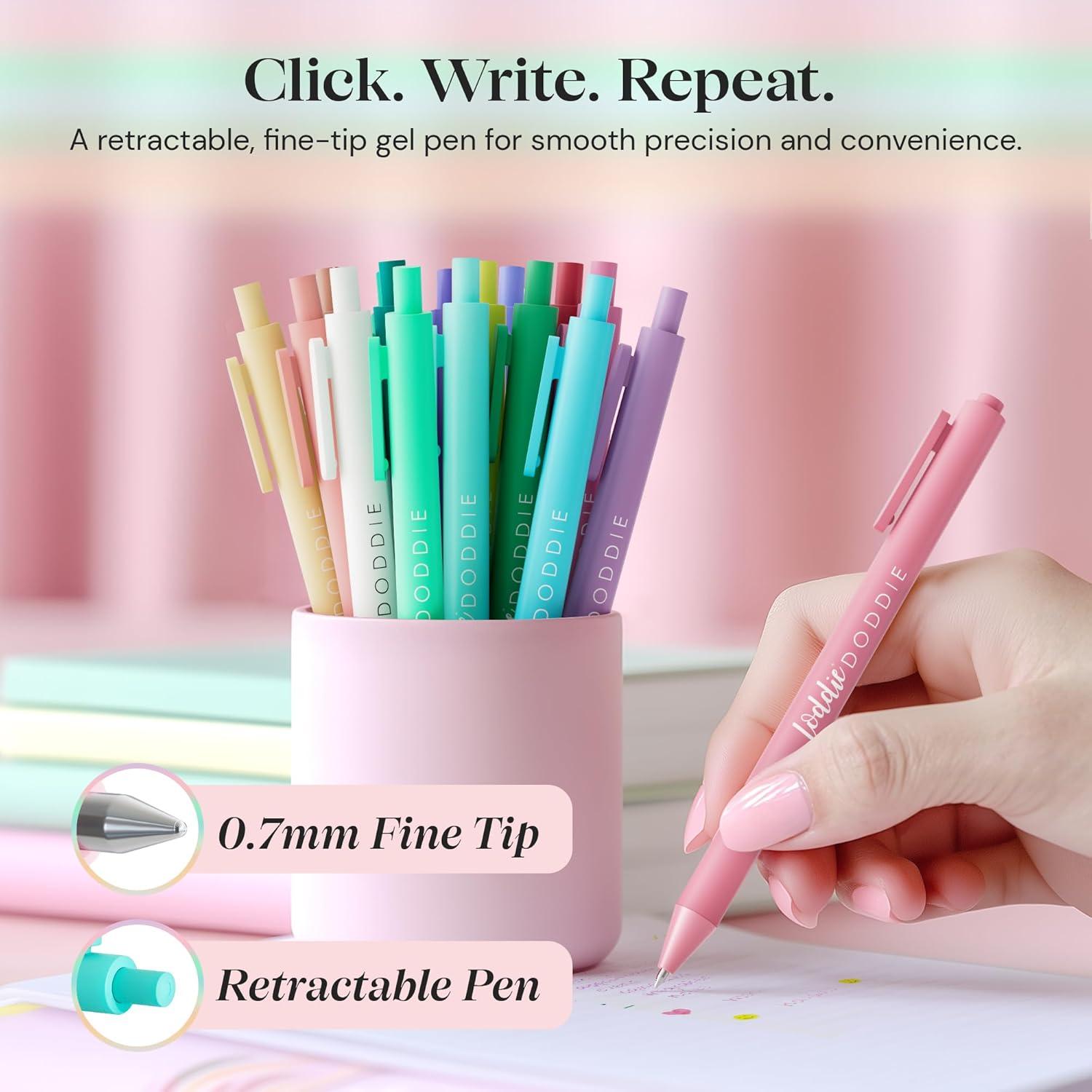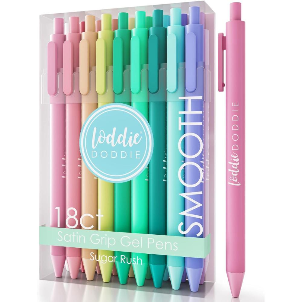 Loddie Doddie Retractable Gel Pens with Satin Barrel – Fine Point – 18 Bright Color Pens for Bullet Style Journals, Notebooks, Planners, Calendars, Notes & Drawing, Use at Home, Office, School, Crafts(Pastel)